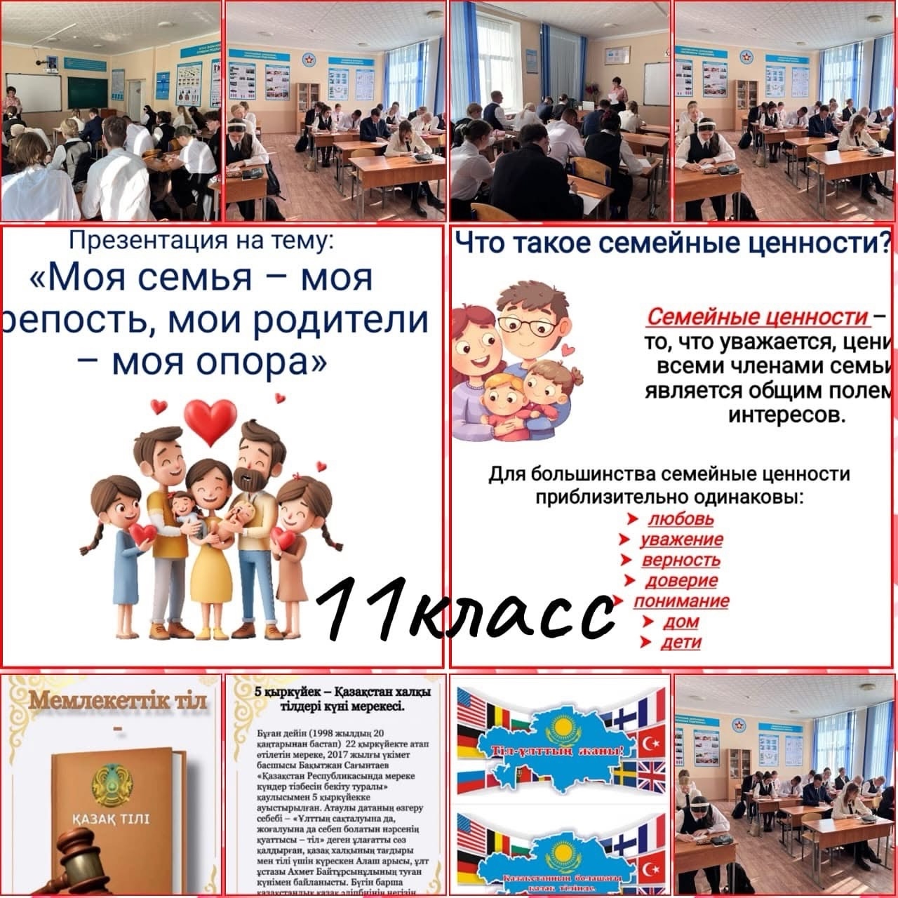 Бұл күндері біздің мектеп әсіресе жылы және жайлы, өйткені біз Отбасы күнін атап өтеміз! 1-11 сынып оқушылары (560 адам) «Менің отбасым» сынып сағаттарына қатысты.