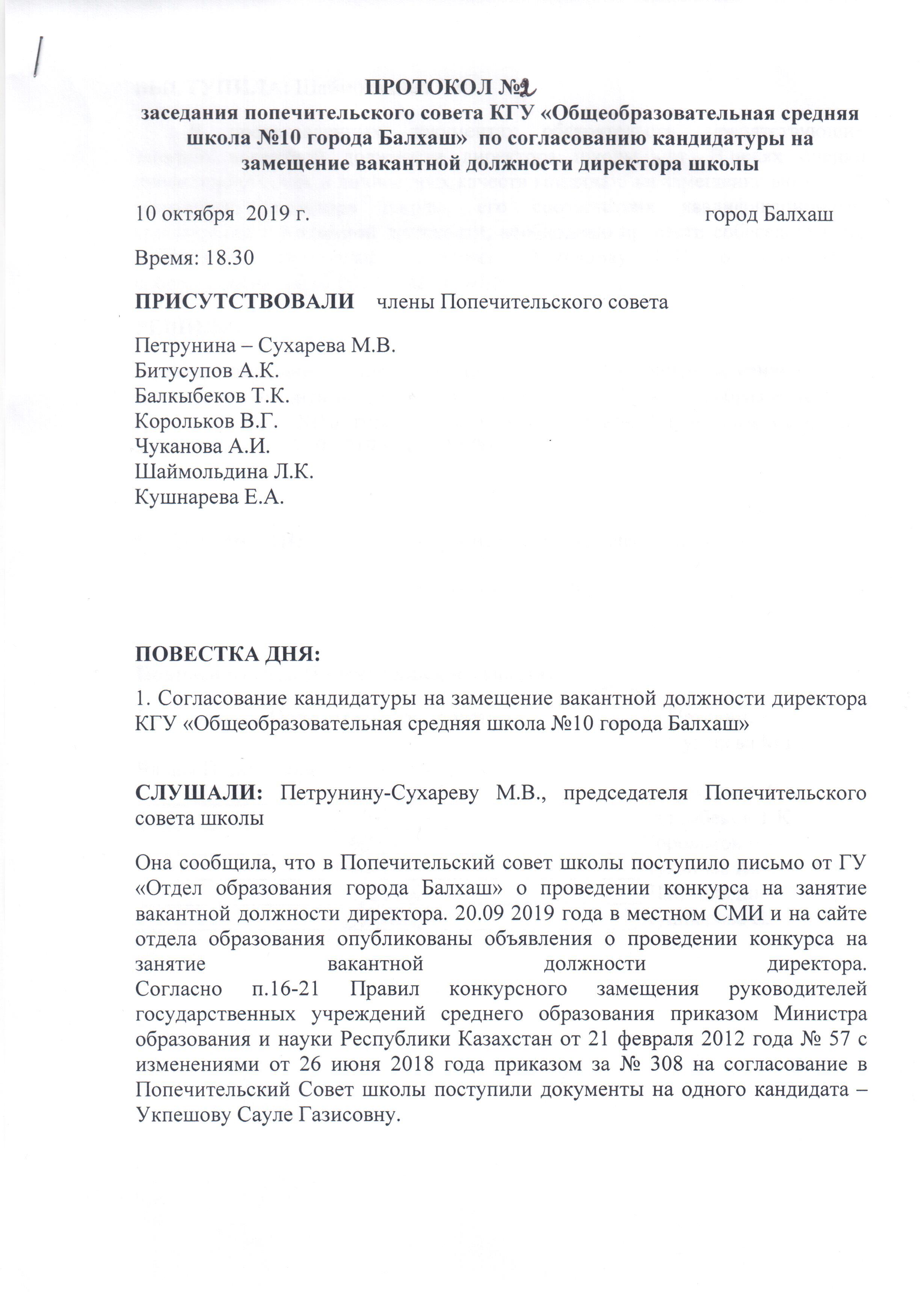 Коммунальное государственное учреждение "Общеобразовательная школа №10" отдела образования города Балхаш управления образования Карагандинской области