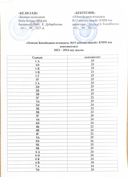 "Әлихан Бөкейханов атындағы №15 мектеп-лицейі" КММ-нің контингенті