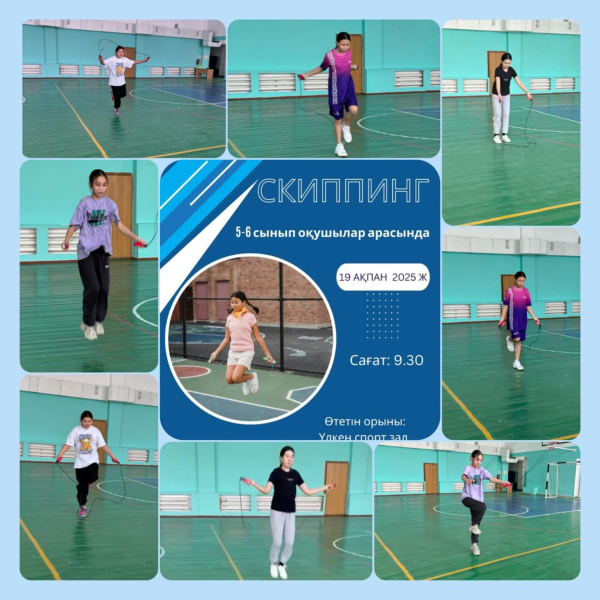В рамках недели физкультуры «Здоровое тело – здоровый дух» 19 февраля прошли соревнования по «ПРЫЖКУ» среди девочек 5-6 классов. КАК РЕЗУЛЬТАТ: 1 место: Манджугул Инкар, ученица 6 Б класса 2 место: ученик 6 класса Ощущение корзины 2 место Мереке Гулим 3 м