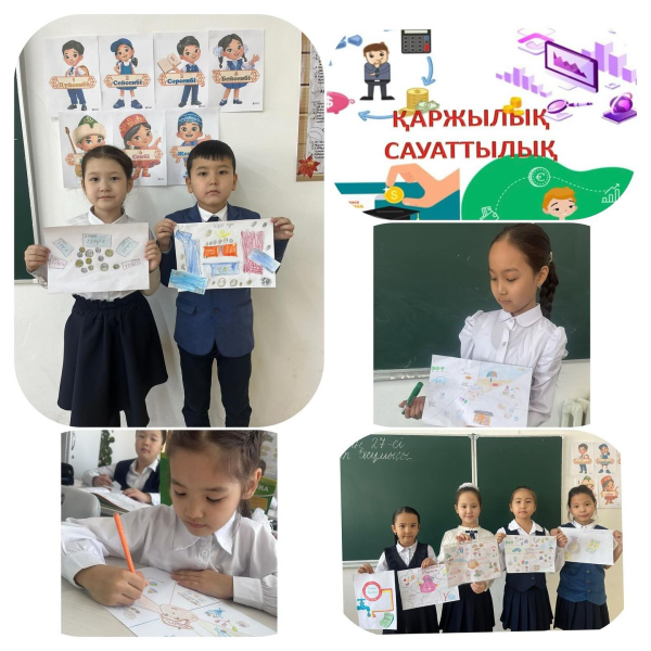 В рамках недели финансовой грамотности «Финансовый мир» КММ «Школа-лицей № 15 им. А. Букейханова» с учащимися 2 «А», 3 «А» и 4 «Б» классов прошла сессия рисования по темам «Семейный бюджет» и «Финансы». Учащиеся поделились своими мыслями о пользе планиров