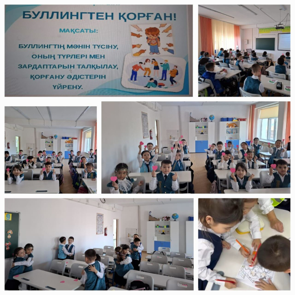 В 1 «Ғ» классе 03.03.2025 года прошел классный час на тему «Защити себя от травли». Формировалась концепция противостояния травле и шага к пониманию с добротой.
