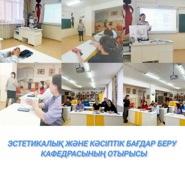 31.03.2025. Эстетикалық және кәсіптік бағдар беру кафедрасының отырысы өткізілді. Күн тәртібінде: ”Нәтижеге бағытталған білім” баяндама 2024-2025 оқу жылы ІІІ- тоқсан бойынша атқарылған жұмыстар және білім сапасы 2024-2025 оқу жылы IV- тоқсанының жұмыс жо