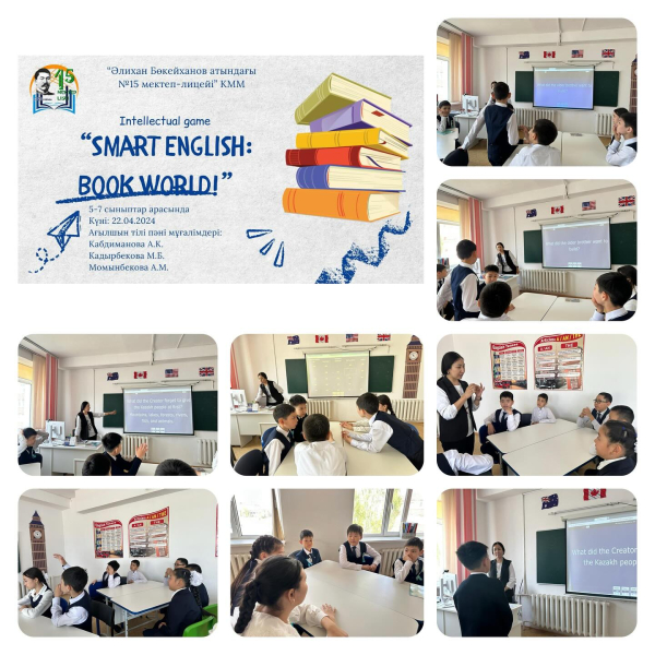 23.04 «ХХІ ғасыр-сауатты ұрпақ ғасыры» атты апталығы аясында 5 сыныптар арасында “Smart English: Book World” тақырыбында интеллектуалды ойын өтті. *Мақсаты:* Оқушылардың ағылшын тілі пәніне, кітап оқуға қызығушылықтарын арттыру. Оқушылардың ойлау, сөйлеу