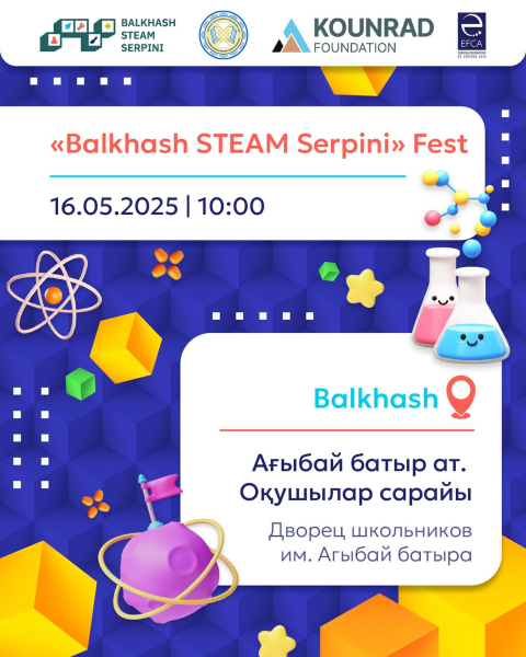 Балқашта үлкен жаңалық! 2025 жылғы 16 мамырда Балқаш қаласында алғаш рет «Balkhash STEAM Serpini» Fest ғылыми-танымал фестивалі өтеді! Бұл – ғылым, технология, инженерия, өнер және математика салаларындағы ең үздік жобалар мен болашақ идеялардың тоғысат