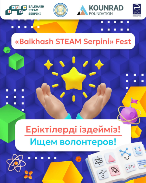 Балқашта 16 мамырда өтетін «Balkhash STEAM Serpini» Fest ұйымдастырушы ұжымына ерікті болуға шақырамыз. Бізге ұйымдастыруға, қатысушылармен жұмыс істеуге және фестивальде жағымды атмосфера қалыптастыруға көмектесуге дайын, бастамашыл әрі жауапты адамдар