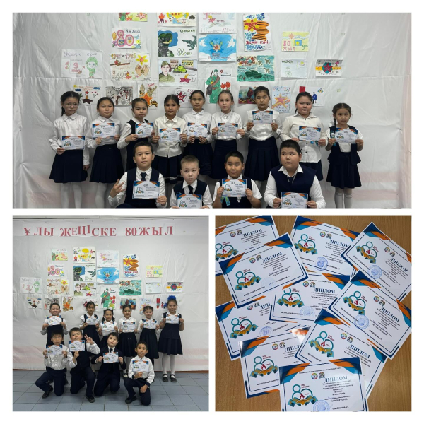 Ұлы Жеңістің 80 жылдығына орай,2-7 сыныптар арасында өткен “Ер мен елдің жеңісі” атты суреттер байқауы өтіп жүлделі I,II,III орынмен марапатталды.