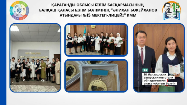 Қарағанды облысы білім басқармасының Балқаш қаласы білім бөлімінің “Әлихан Бөкейханов атындағы №15 мектеп - лицейі “ коммуналдық мемлекеттік мекемесі