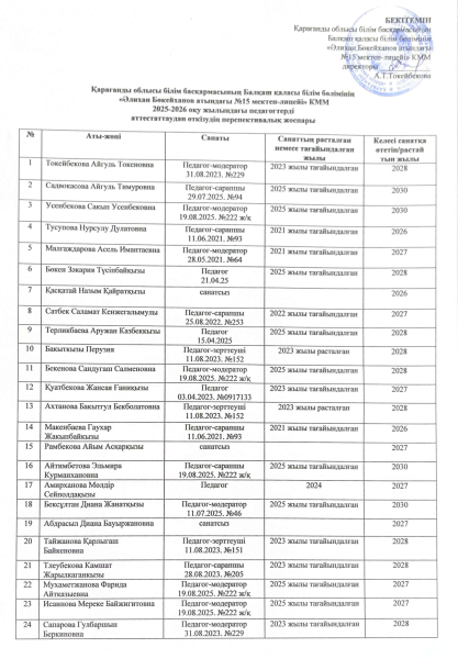 Коммунальное государственное учреждение “Школа - лицей №15 имени Алихана Букейханова” отдела образования города Балхаш управления Карагандинской области.