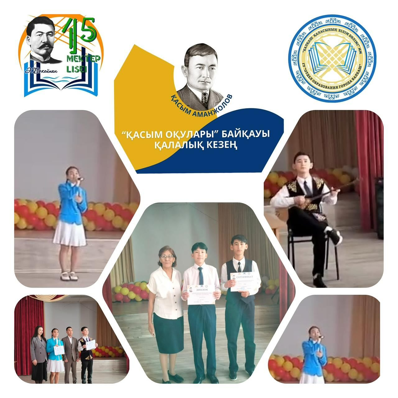 10 октября 2025 года прошёл городской этап конкурса «Касым оқулары» среди учащихся 8–11 классов. Конкурс был организован по трём направлениям: «Пусть со мной не умрёт, как стих мой…» «Не другой, а я говорю о себе» «Дарю из своей жизни стихотворение»
