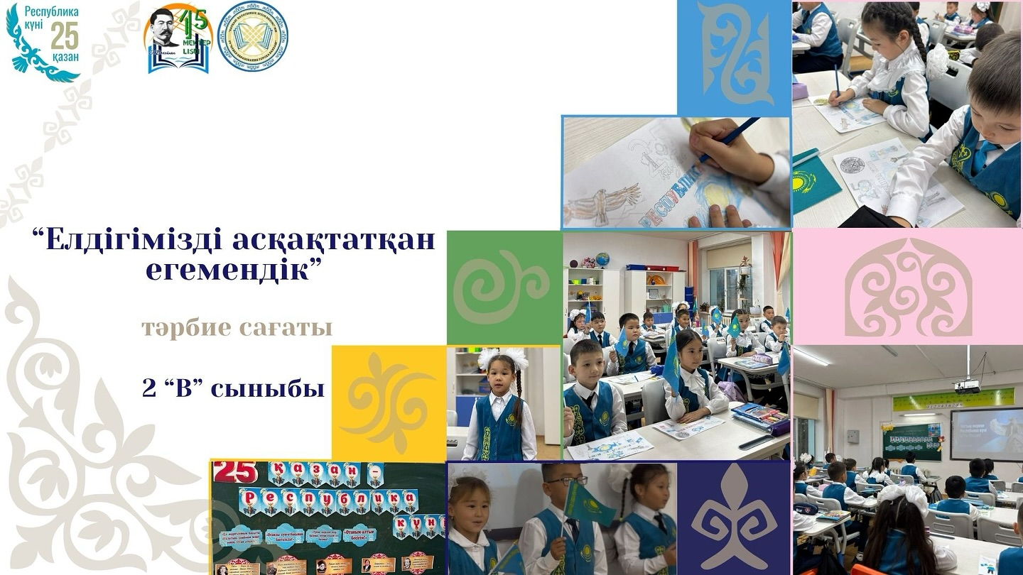 20 қазан күні 2 “В” сыныбында Республика күніне орай «Елдігімізді асқақтатқан егемендік» атты тәрбие сағаты өтті