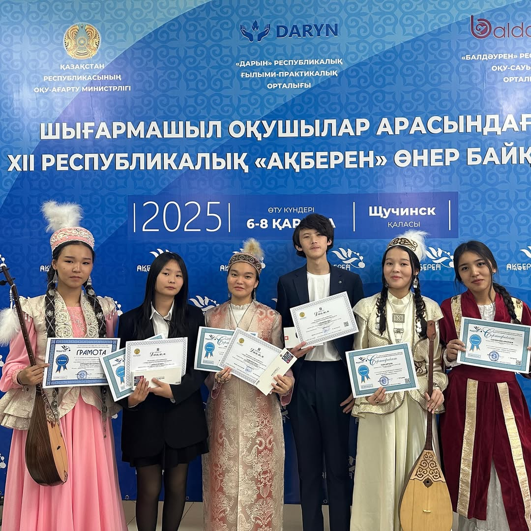 В республиканском этапе конкурса искусств “Ақберен”, который проходил в городе Щучинск 6–8 ноября 2025 года, ученица 9 «Ә» класса нашей школы-лицея Еркеназ Анишева заняла призовое 2-е место в номинации «Художественное чтение». Поздравляем!