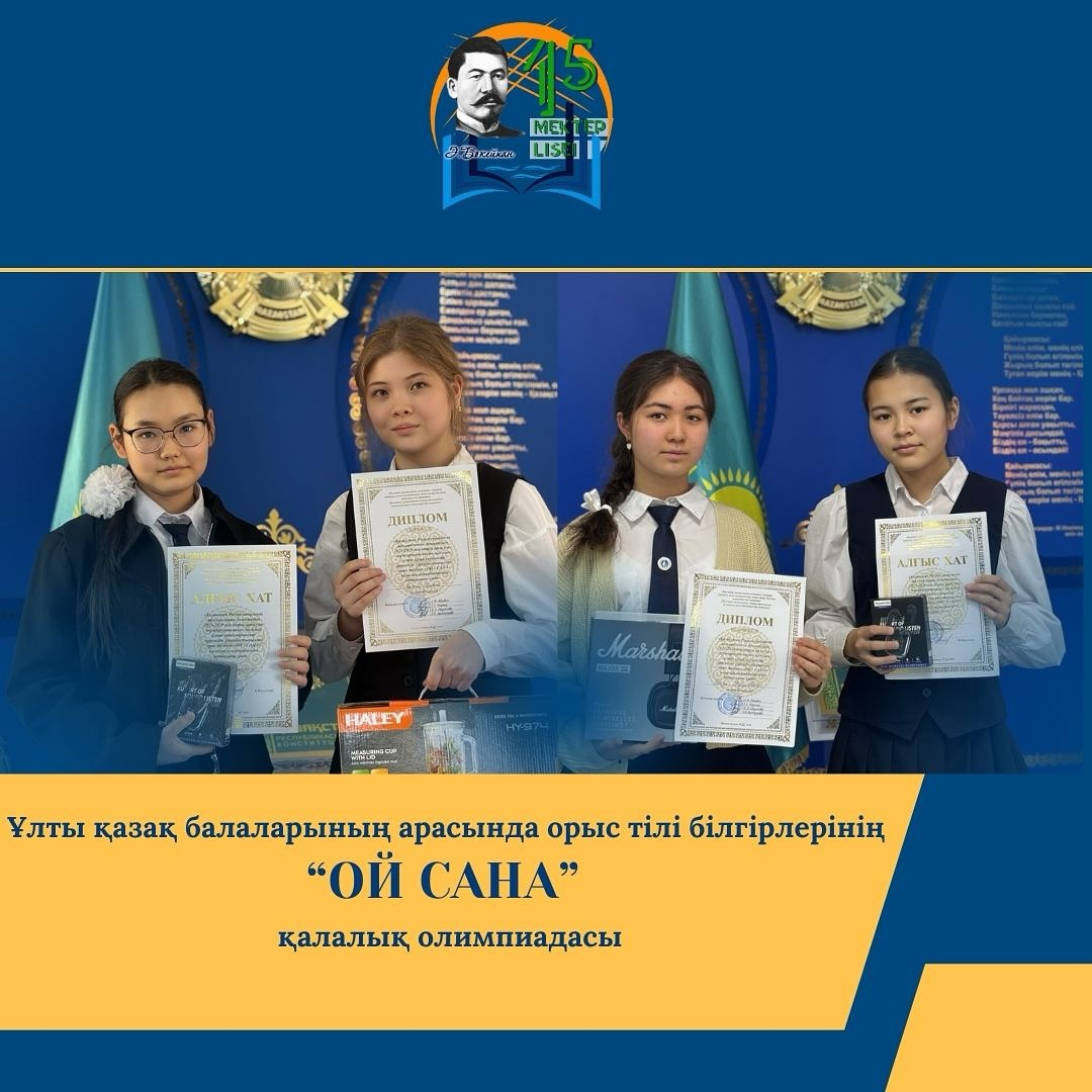 20 ноября среди учащихся 13–16 лет прошла городская олимпиада знатоков русского языка “ОЙ САНА” среди детей казахской национальности. Ученики нашей школы-лицея приняли участие и завоевали призовые места и награды.