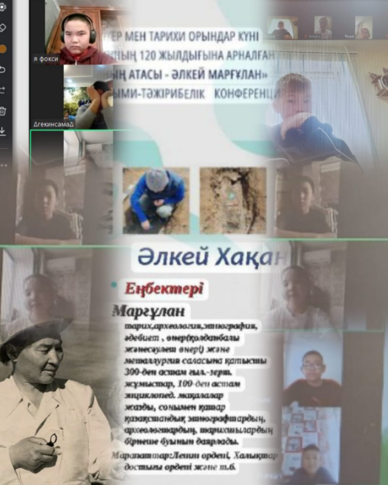 Балқаш қаласы білім бөлімінің «№24 мектеп-интернат» КММ -де 11.12.2025ж күні "Табысты тарихшылар" тақырыбында 6 "А"сынып оқушыларымен зуум форматта сынып сағаты өтті.Мақсаты:Қазақтың көрнекті ғалымы, тарихшы, этнограф Әлекей Хаканұлы Марғұланның өмір жолы мен ғылыми мұрасын таныстыру.