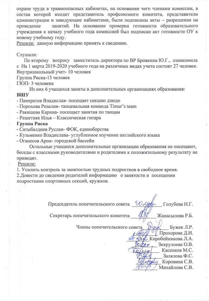Протокол № 3 заседания попечительского совета школы от 28.02.2020 г.
