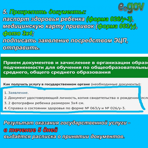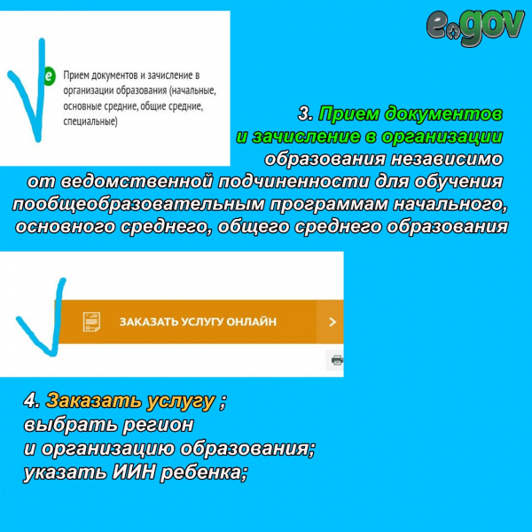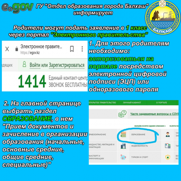 Прием в 1 класс через портал egov.kz