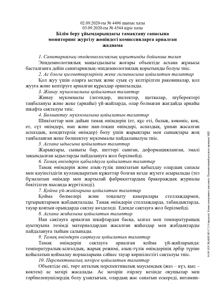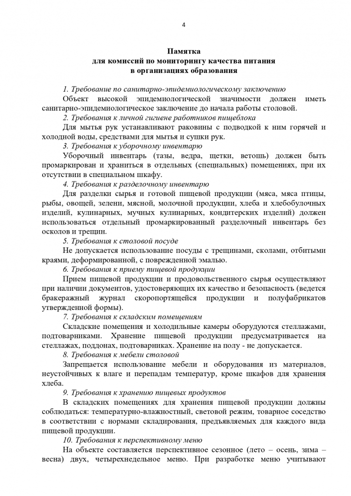 Качество питания в организациях образования для комиссий по проведению мониторинга памятка