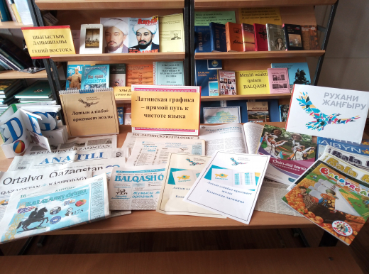 08.10.2020 г. библиотекарь школы Бедельбаева З.К. провела обзор с учащимися 4 «Б» класса  и рассказала о латинском алфавите, показала книги и журналы. Далее ознакомила учителей с выставкой, на которой представлена литература, отражающая и разъясняющая преимущества перехода казахского алфавита от кириллицы к латинской графике, который позволит будущему поколению расширить круг общения и увеличить доступ к информации.