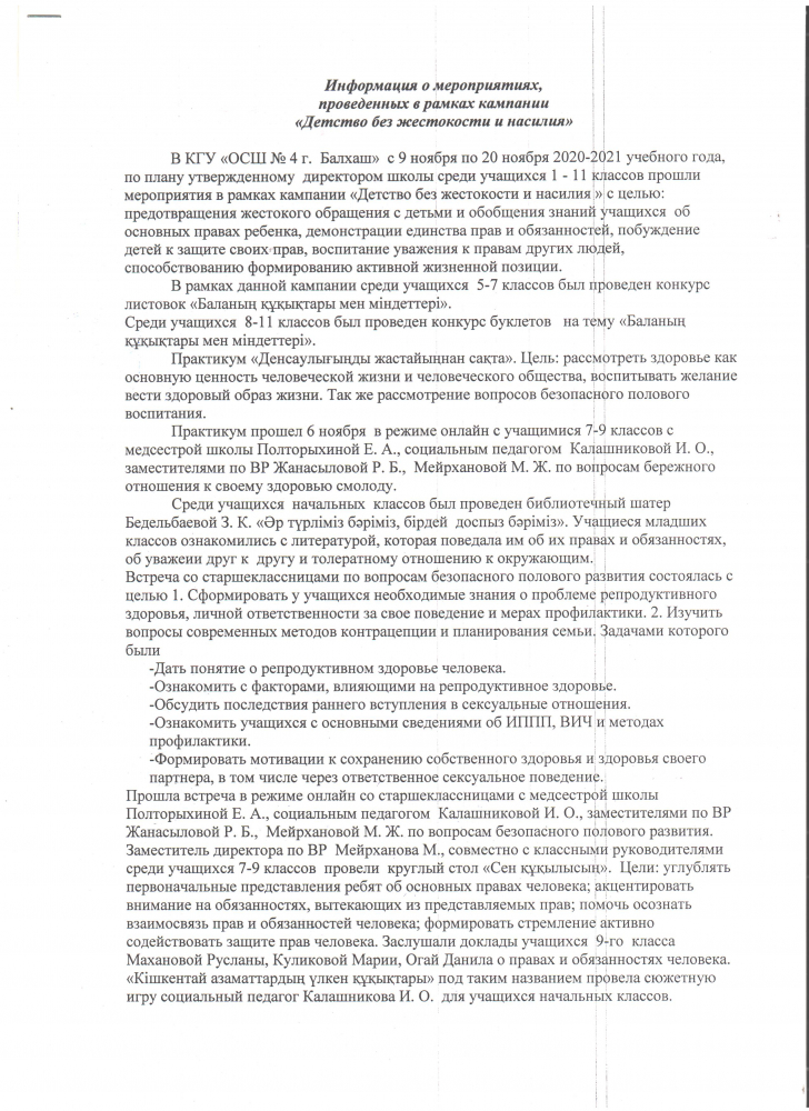 Информация о мероприятиях, проведенных в рамках кампании "Детство без жестокости и насилия"