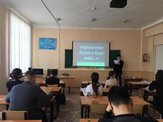 15 февраля 2021 года в школе В 8-11 классах прошли классные часы “Долг. Честь. Память”, “Ты в памяти и в сердце моем -Афган”, “Седая память Афгана”, посвященные выводу войск из Афганистана. Цель классных часов – познакомить с событиями в Афганистане 1979-1989 годов. Школьники познакомились с историей Афганской войны, узнали о причинах начала никем необъявленной Афганской войны и ее продолжительности, о невосполнимых потерях советских войск, о наших земляках, которым судьба предначертала жестокую участь — сгореть в огне чужой войны и которым уже никогда не суждено переступить порог родного дома.