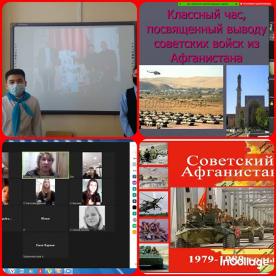 15 февраля 2021 года в школе В 8-11 классах прошли классные часы “Долг. Честь. Память”, “Ты в памяти и в сердце моем -Афган”, “Седая память Афгана”, посвященные выводу войск из Афганистана.
