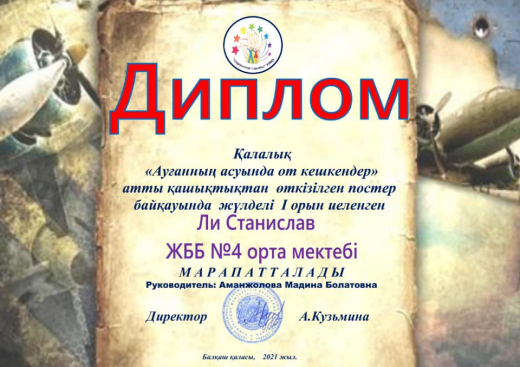 11.02.2021 года подведены итоги городского дистанционного конкурса постеров “Ауғаның асуында от кешкендер”.