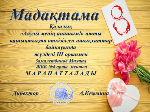 Поздравляем победителей в конкурсе "Аяулы менің анашым!"