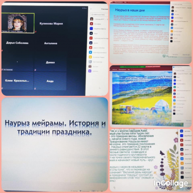 Классные часы «Забытые традиции казахского народа», «История национальных блюди и одежды» в 10-11 классах проведены в дистанционном формате посредством платформы ZOOM. Старшеклассники не только закрепили знания о Наурызе, но и расширили представление о национальном фольклоре, забытых традициях и обычаях казахского народа.