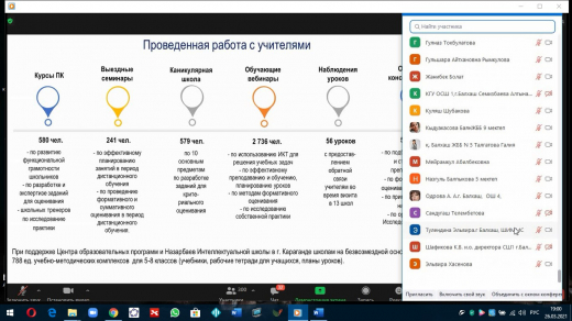 26.03.2021 года в городе Балхаш прошла научно-практическая конференция «Качество знаний: от идеи до воплощения. Опыт лидеров», организованная Филиалом Центра педагогического мастерства г. Караганда и отделом образования г. Балхаш. Цель встречи: организовать дискуссионное пространство для поиска, обмена идеями и творческими инициативами по вопросу повышения качества знаний учащихся между учителями-мастерами, учителями-исследователями и учителями-экспертами.