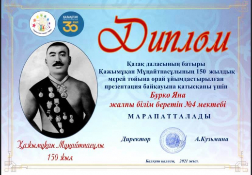 К 150-летию Кажымукана Мунайтпасова – батыра казахского народа, проведен дистанционный городской конкурс презентаций. Первый казах, ставший чемпионом мира по французской борьбе, многократный победитель мировых, региональных, российских, а позже всесоюзных чемпионатов по классической борьбе среди супертяжеловесов, великий атлет Мукан Мунайтпасов, больше известен и миру, и казахскому народу под именем Кажымукан. То есть Святой (совершивший Хадж) Мукан.