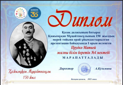 К 150-летию Кажымукана Мунайтпасова – батыра казахского народа, проведен дистанционный городской конкурс презентаций.