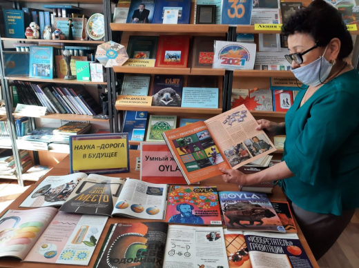 Библиотекарем школы Бедельбаевой З.К. с целью повышения интереса учащихся к изучению естественнонаучных дисциплин организована книжная выставка «Наука - дорога в будущее», где ребята познакомились с научными трудами казахстанских ученых с мировым именем.