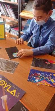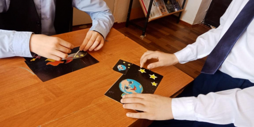 Проведены беседы, на которых ребятам рассказали о первом в мире покорителе космоса, о космическом снаряжении и питании космонавтов. Полученные знания дети закрепили в своих творческих работах. Ученики 4 «Б» класса выполнили аппликации «Собери космос».