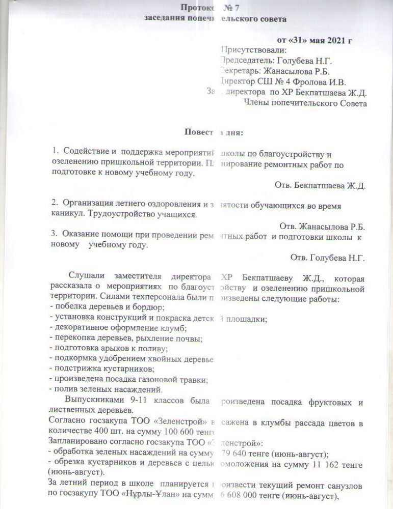 Протокол № 7 заседания попечительского совета школы от 31.05.2021 г.