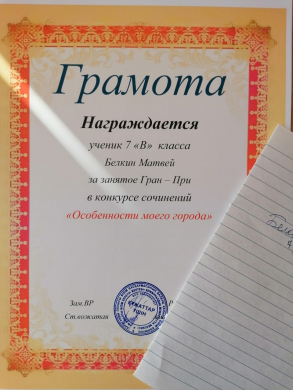 В КГУ "ОШ #4 г.Балхаш" Школьным Парламентом был организован конкурс сочинении на тему: "Особенности моего города". Поздравляем учеников 7 "В" класса с грамотами.
