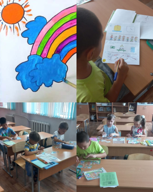08 августа, в КГУ "ОШ № 4", состоялось очередное занятие на курсе "Малышкина школа" по подготовке будущих первоклассников. Занятия по математике прошло в игровой форме. Ребята учились выделять единичные предметы из множества предметов. По развитию речи разучили скороговорку, чистоговорку, играли в игру " Кто летает?", и упражнялись в написании наклонных палочек. По рисованию выявляли знания основных цветов при помощи рисования радуги.