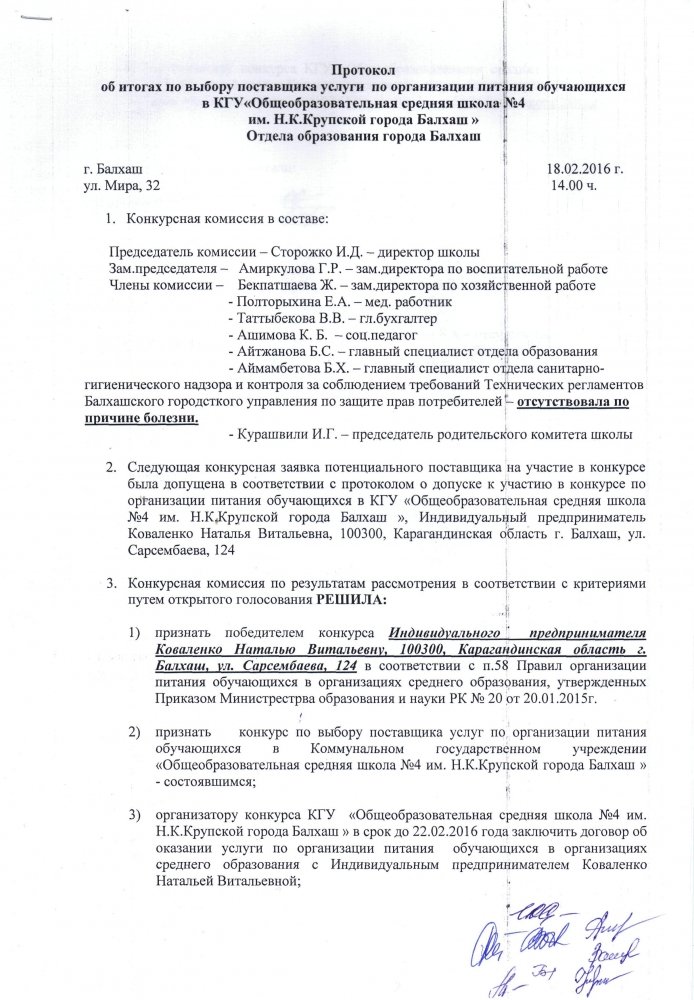 Коммунальное государственное учреждение «Общеобразовательная школа №4» отдела образования города Балхаш управления образования Карагандинской области