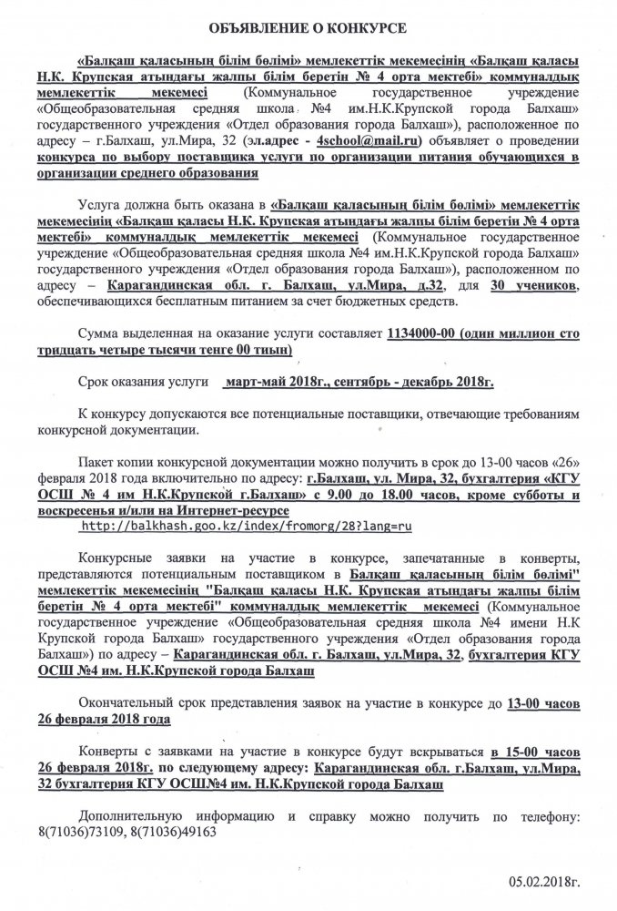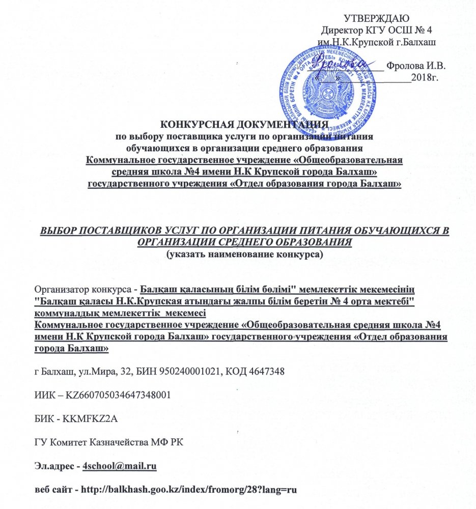 Коммунальное государственное учреждение «Общеобразовательная школа №4» отдела образования города Балхаш управления образования Карагандинской области