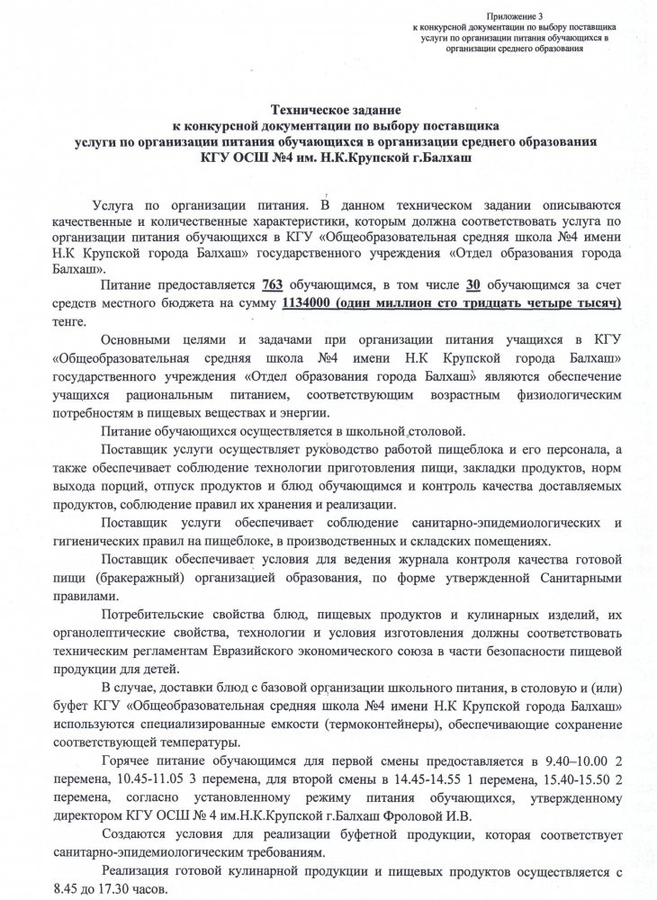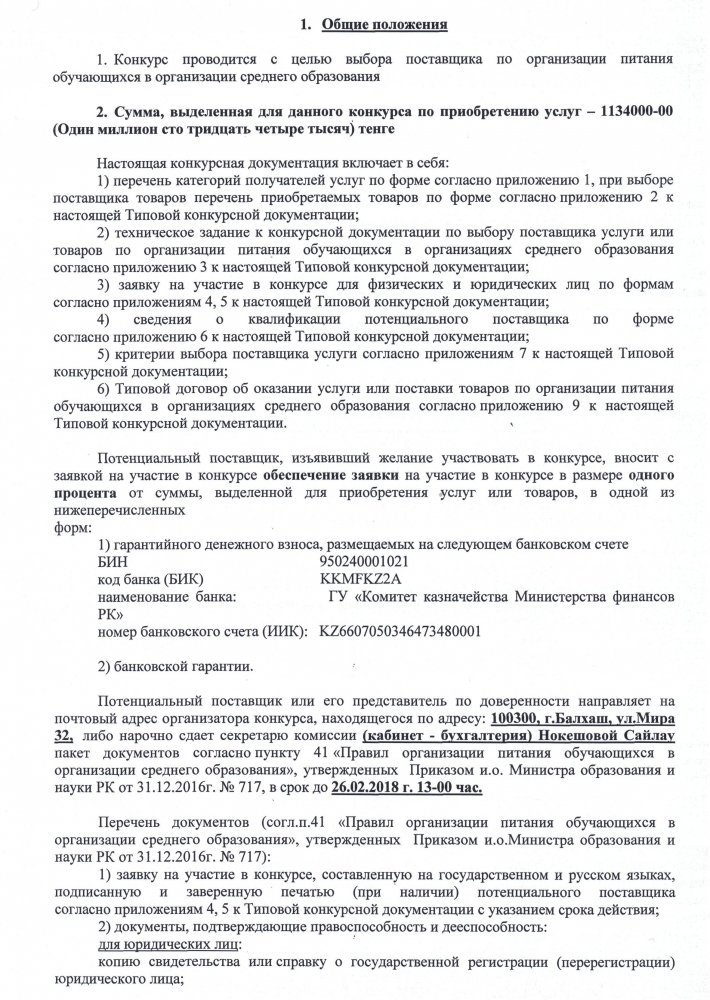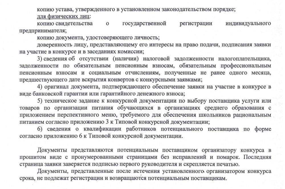 Об утверждении конкурсной документации по выбору поставщика услуги по организации питания обучающихся в организации среднего образования на 2018 г.