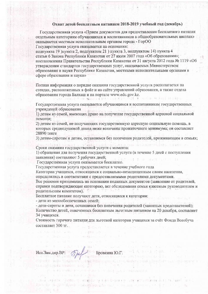 Охват детей бесплатным питанием 2018-2019 учебный год (декабрь)