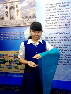 В течение недели  под руководством  Жанасыловой Р.Б. проходила выставка  творческих работ  «Қарыштай бер, елім менің- Қазақстаным» среди учащихся 5-8 классов. Школьники отразили в работах  по стеклу  любовь к родному краю, гордость за свою Родину, показали в ярких красках красоту и величие природы Казахстана.