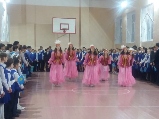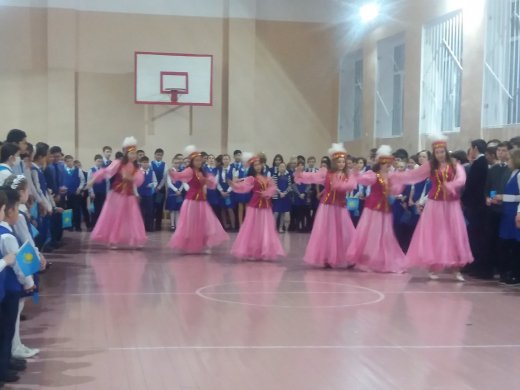 Созданию атмосферы торжественности, эмоциональной возвышенности, чувства гордости за свою страну способствовало проведение торжественной линейки «Тәуелсіздік - тұғырым». В сценарии плавно переплетались лирические и прозаические тексты, раскрывающие  основные этапы развития Казахстана на пути к  независимости. Мероприятие было начато с исполнения Государственного гимна Республики Казахстан и велось на двух языках. Учащиеся 4-6  классов в стихах, прозе поздравляли Казахстан и всех, кто в нем проживает с праздником.  Завершилась  торжественная линейка  коллективным флешмобом,  который подготовила  танцевальная группа «Ритм».