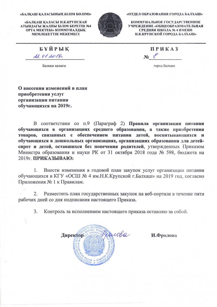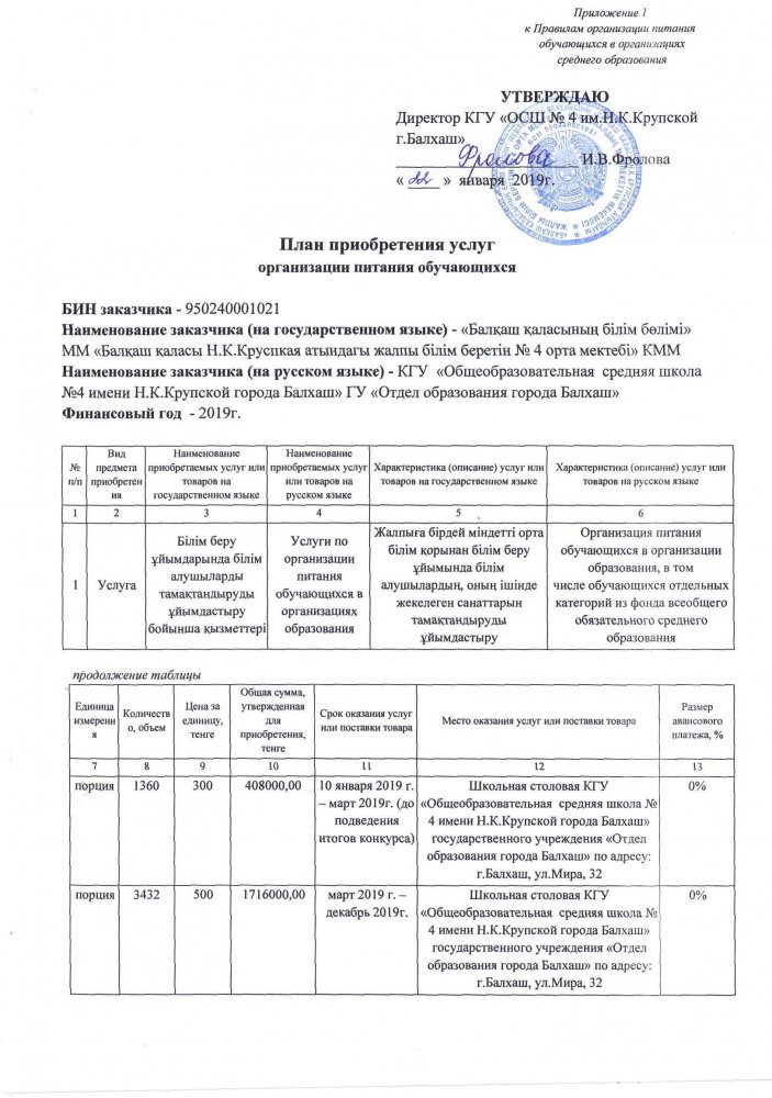 О внесении изменений в план приобретения услуг организации питания обучающихся на 2019 г.