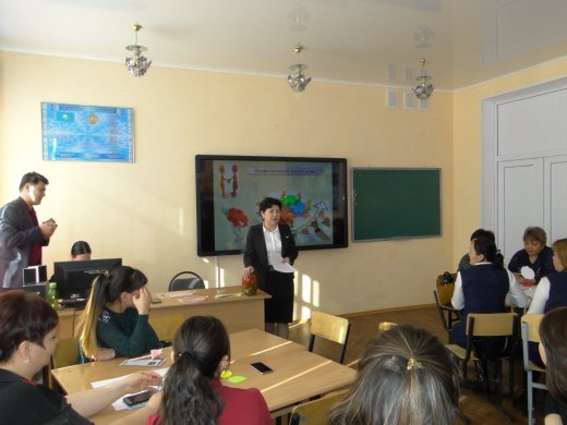 Далее, заместитель директора по воспитательной работе Жанасылова Р.Б. провела мастер-класс на тему «Активные приемы работы в обучении и воспитании школьников».