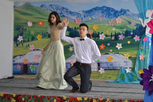 Большую радость доставили зрителям учащиеся 10, 9, 8 и 5 классов. С любовью и нежностью была исполнены трогательная песня на английском языке Саметовой Аины (8 «А» класс) под нежный чарующий вальс Максумовой Карины и Болатбекулы Батырхана (10 класс). Зажигательный танец «Джентльмены» (ребят 9 «А» класса) и никого не оставил равнодушным. Запоминающимся стал творческий номер в исполнении гитариста Дитлера Артема (8 «В» класс), флешмоб танцевальной группы «Хрустальный башмачок». Кульминацией праздника стал дует учителя географии Тусипбекова Б.М. и бухгалтера школы Максутовой М.М.