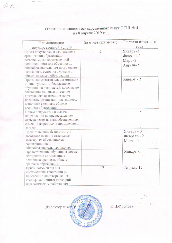 Отчет по оказанию государственных услуг на 8 апреля 2019 года