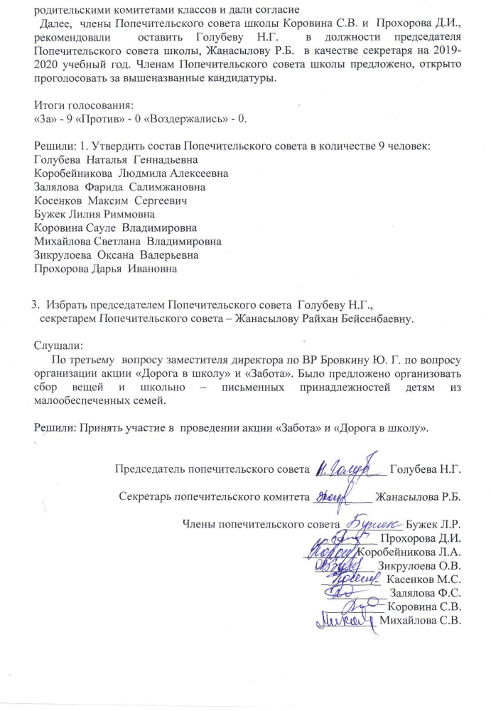 Протокол № 1 заседания попечительского совета школы от 31.08.2019 г.