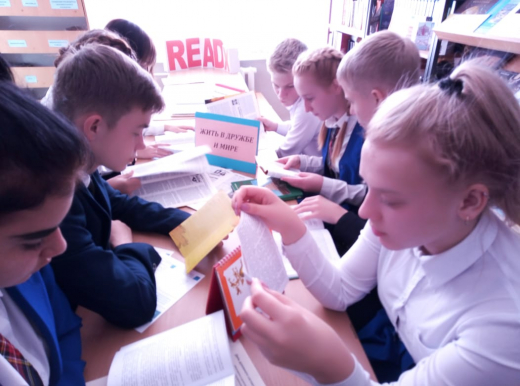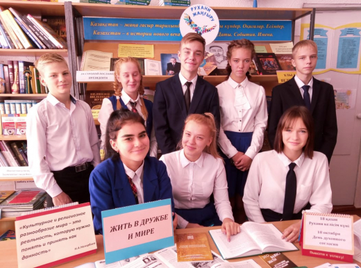 В библиотеке школы оформлена книжная выстака выставка на тему «Жить в дружбе и мире». Духовное согласие – путь к единству народа. А в свете происходящих в мире событий - все более ценно, когда в нашем государстве царят толерантность, дружба, мир. Благородный поступок, совершенный в этот день может стать началом для совершения всеми гражданами подобных поступков во имя мира и согласия.
