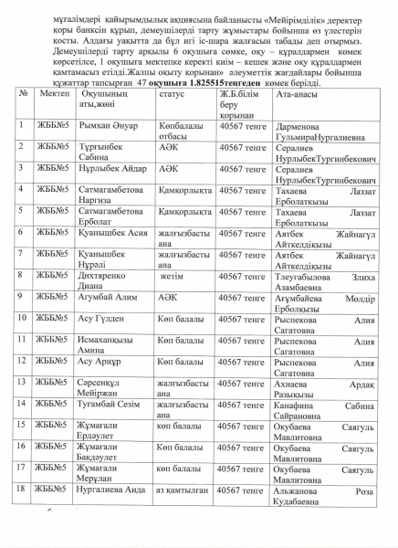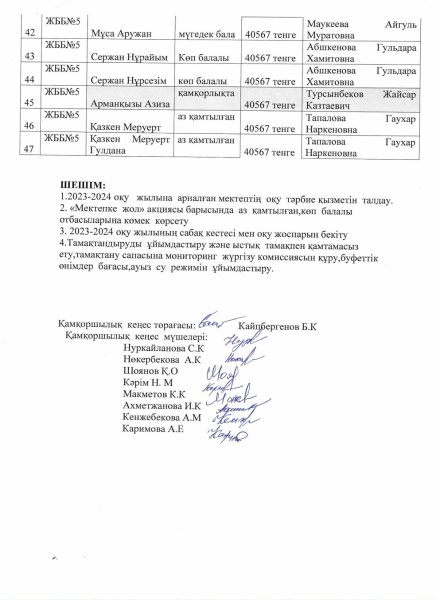 Список педагогов и персонала школы №5 города Балхаш