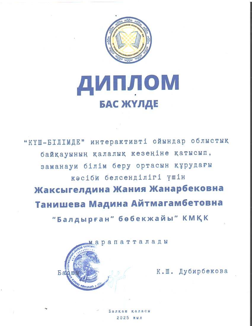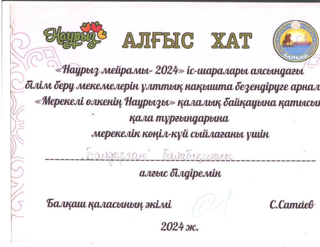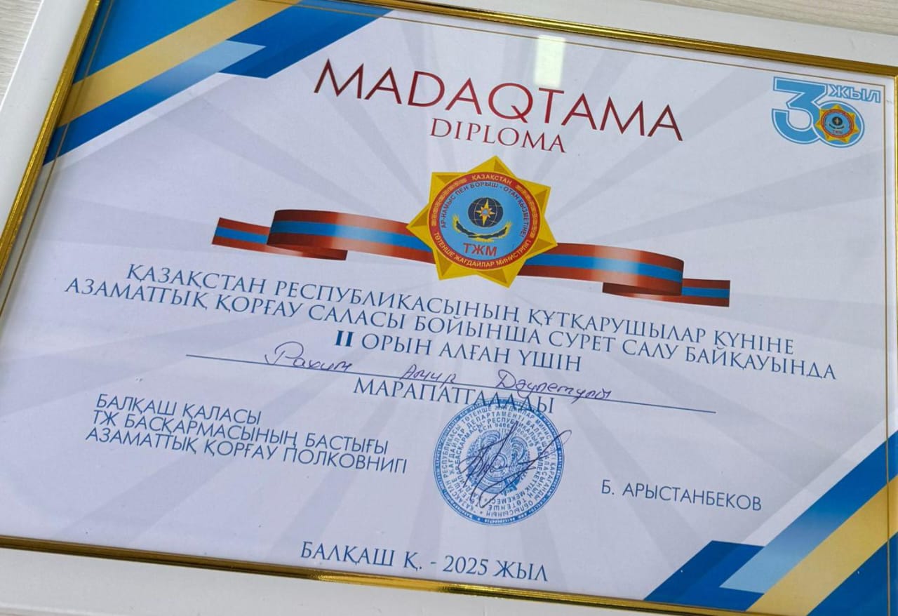 Мадақтама Балқаш қаласы ТЖ басқарамасы Азаматтық Қорғау саласы